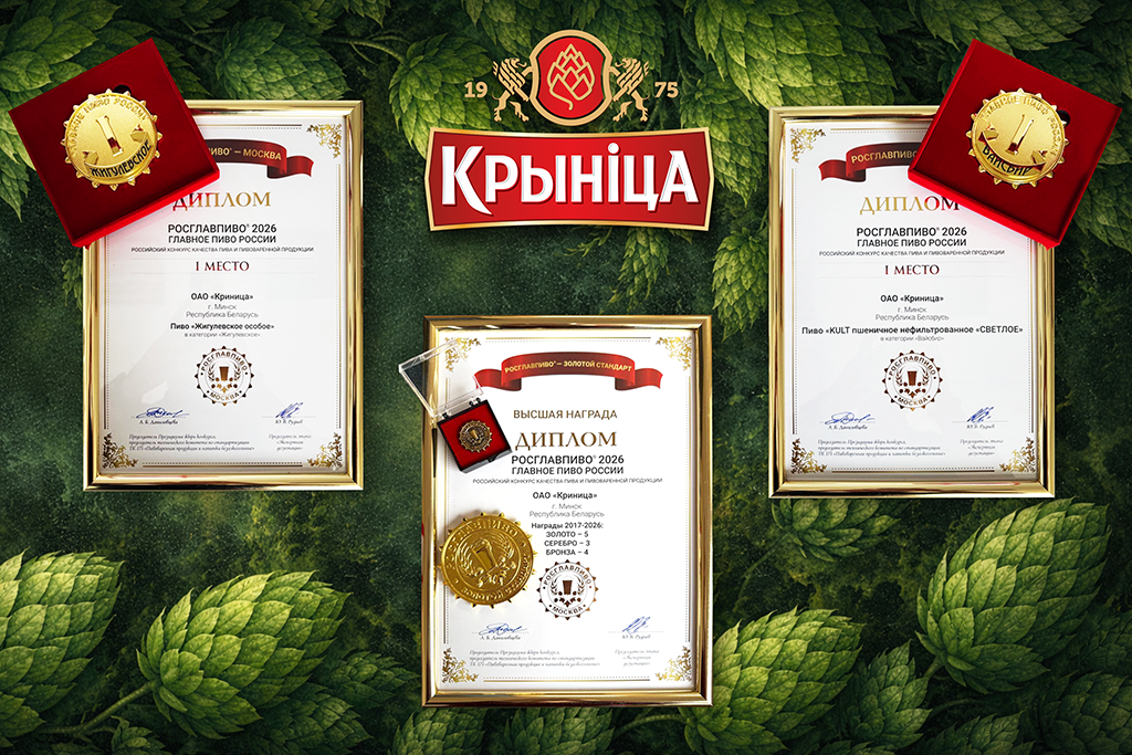 ОАО «Криница» приняла участие в российском конкурсе качества пивоваренной продукции «РОСГЛАВПИВО 2026» и в очередной раз успешно подтвердила высокий уровень мастерства и качество выпускаемой продукции.